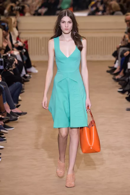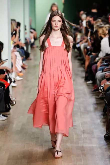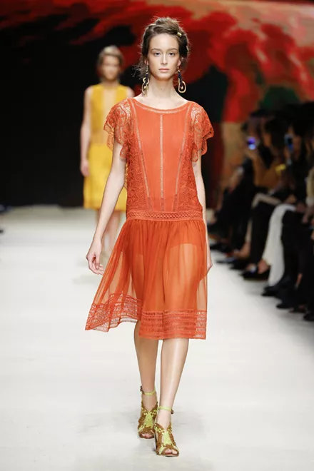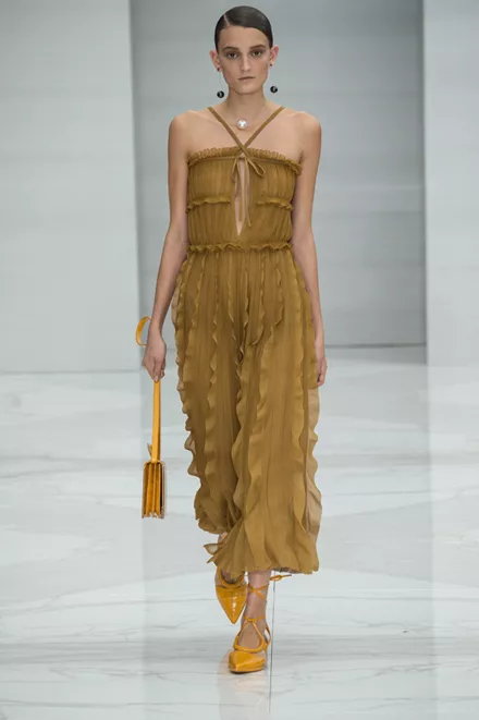 Οι πιο απαλές αποχρώσεις του πορτοκαλί πρωταγωνιστούν στην ανοιξιάτικη χρωματική παλέτα. (Alberta Ferretti)