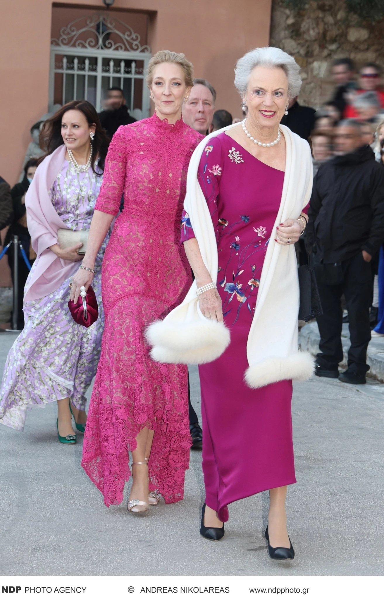 Από τους πρώτους που έφθασαν στον ιερό ναό ήταν η Όλγα Κεφαλογιάννη με τη μητέρα της, Ελένη Βαρδινογιάννη Κεφαλογιάννη, η μητέρα της νύφης, Αγάπη Πολίτη, αλλά και ο κουμπάρος και αδελφός του γαμπρού, Παύλος Ντε Γκρες με τη Marie Chantal και τα δυο από τα παιδιά τους.