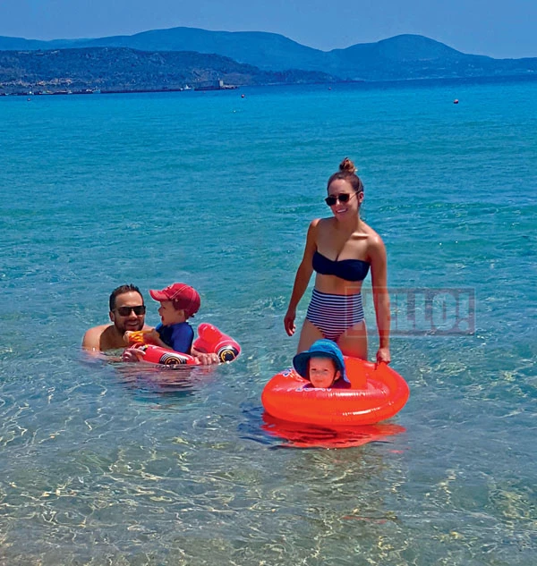 Ο φωτογραφικός φακός του Hello! συνέλαβε την οικογένεια Μπουσάλη σε εξόρμησή της στη θάλασσα.