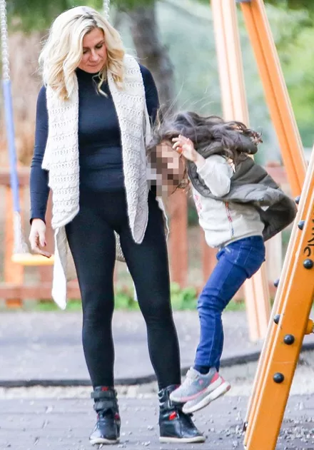 Ο φωτογραφικός φακός απαθανάτισε την Κατερίνα Καραβάτου σε παιδική χαρά των βορείων προαστίων μαζί με τα δύο της παιδιά να απολαμβάνουν ξέγνοιαστες στιγμές παιχνιδιού.