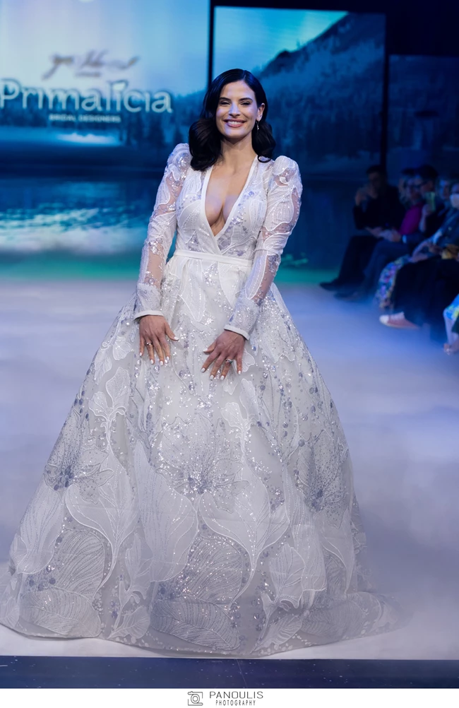 Η Χριστίνα Μπόμπα άνοιξε το show με ένα εντυπωσιακό opening act, φορώντας ένα princess νυφικό Primalicia. Η Ισμήνη Παπαβλασοπούλου επίσης έκλεψε τις εντυπώσεις με δημιουργία Demetrios, ενώ η Έλενα Τσαγκρινού πραγματοποίησε μια statement εμφάνιση με νυφικό του οίκου Justin Alexander. Η bride-to-be Άννα Πρέλεβιτς έκανε την ανατροπή και περπάτησε με μια αριστοκρατική τουαλέτα AthenaV.