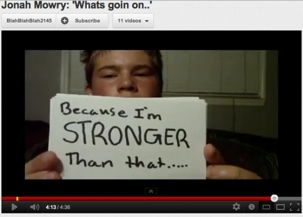 ο οποίος, πέρυσι τον Αύγουστο, σε ηλικία τότε 13 ετών, αποφάσισε να ανεβάσει ένα βίντεο στο youtube (αυτήν την στιγμή απαριθμεί 10,166,714 views) για να επικοινωνήσει με τον «έξω κόσμο» την δική του ιστορία bullying, που τον είχε οδηγήσει συχνά να σκεφτεί και το ενδεχόμενο να αυτοκτονήσει.