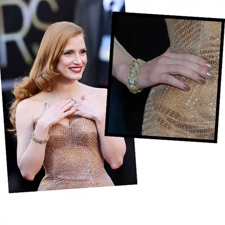 Η Jessica Chastain έβαψε τα νύχια ασορτί με το φόρεμά της ακολουθώντας το trend των μεταλλικών αποχρώσεων. Σαν χρώμα ίσως να μην μας ενθουσιάζει αλλά σαν υφή, το metal look μας αρέσει πολύ!