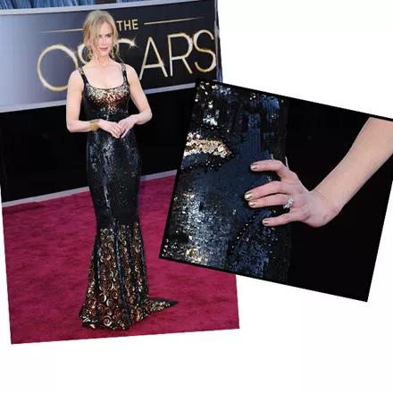 Χρυσές και μεταλλικές αποχρώσεις και από την Nicole Kidman που σπάνια τολμάει υπερβολές στα νύχια. Σούπερ συνδυασμός με το φόρεμά της και τα λιτά κοσμήματά της. Μας άρεσε πολύ!