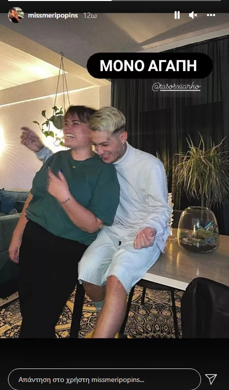 Repost έκανε το σχετικό στόρι από τη συνάντησή τους ο Τάσος Ξιαρχό, προσθέτοντας αναφορικά με την ορθογραφία του ονόματός της: