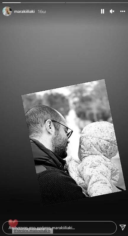 Η Μαρία Ηλιάκη λοιπόν τον φωτογράφισε να την κρατά στην αγκαλιά του και ανέβασε το τρυφερό στιγμιότυπο στα stories της στο Instagram, το απόγευμα της Δευτέρας 21/2.