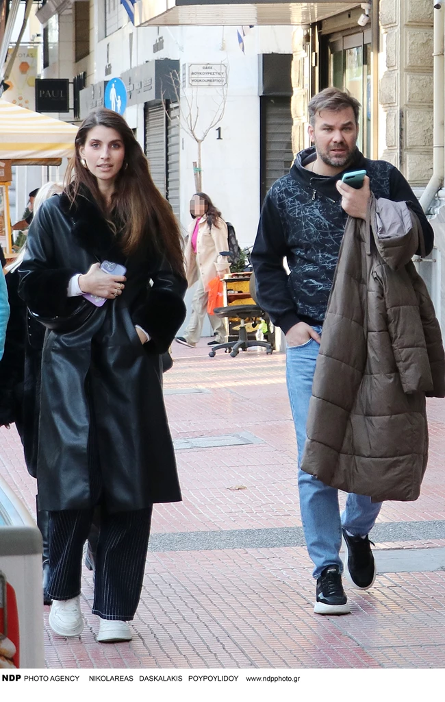 Το ερωτευμένο ζευγάρι έκανε τη βόλτα του στο κέντρο της Αθήνας, ενώ η 25χρονη ήταν ιδιαίτερα stylish, φορώντας ένα μακρύ δερμάτινο παλτό σε μαύρο χρώμα, ένα παντελόνι με ρίγα και τα λευκά sneakers της.