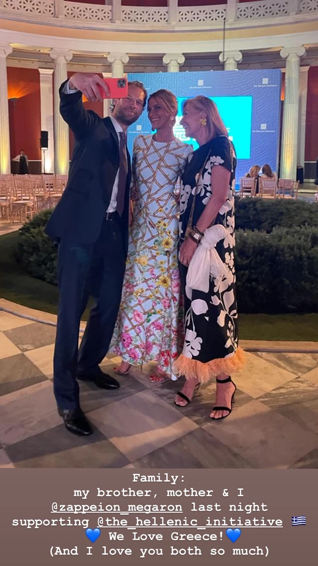 Η οικογένεια παρακολούθησε την ομιλία που πραγματοποιήθηκε στο πλαίσιο της ετήσιας εκδήλωσης που διοργανώνει το "The Hellenic Initiative", θέτοντας ως στόχο την ενίσχυση της επιχειρηματικότητας και της οικονομικής ανάπτυξης. Λίγη ώρα μετά την ολοκλήρωση της ομιλίας, η σύζυγος του Νικόλαου Γλύξμπουργκ δημοσίευσε στον προσωπικό της λογαριασμό στο Instagram μία υπέροχη και σπάνια φωτογραφία, στην οποία ποζάρει μαζί με τη μητέρα και τον αδερφό της.