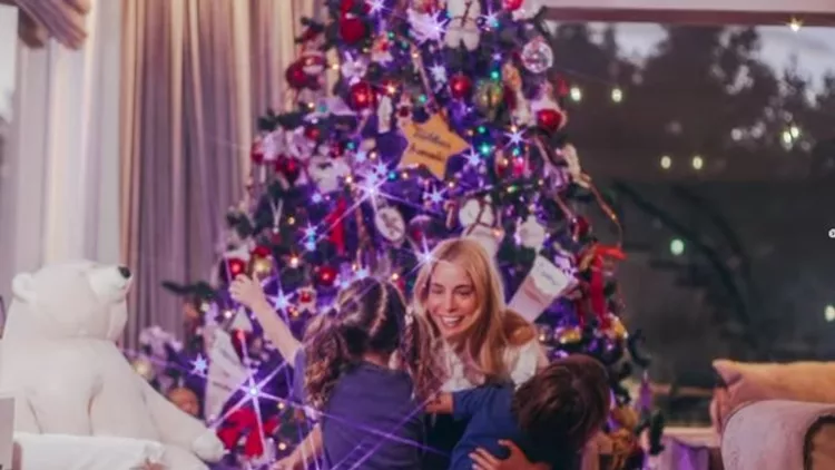 Στη μέση δεσπόζει το δέντρο, λίγο πιο δίπλα είναι ένας άνετος καναπές στο χρώμα της άμμου ενώ μας έδειξε και την ξύλινη τραπεζαρία της με τις μπλε καρέκλες. Ο χώρος περιβάλλεται από πράσινο και είναι πολύ φωτεινός. "Η αντίστροφη μέτρηση για τα Χριστούγεννα ξεκινά", έγραψε στη λεζάντα της.