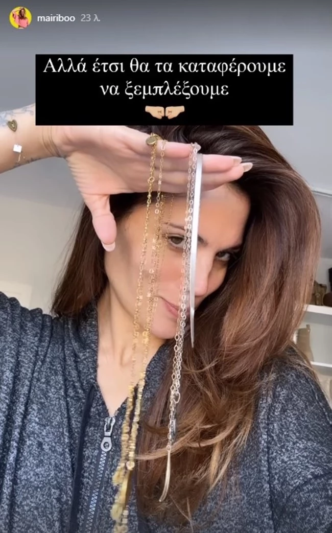 Συγκεκριμένα, η Mairiboo δημοσίευσε μια φωτογραφία από τα μπλεγμένα κολιές της και έγραψε: "Ακριβής απεικόνιση του προγράμματος αυτής της εβδομάδας”, δείχνοντας μάς έτσι ότι το πρόγραμμα της θα είναι αρκετό φορτωμένο.