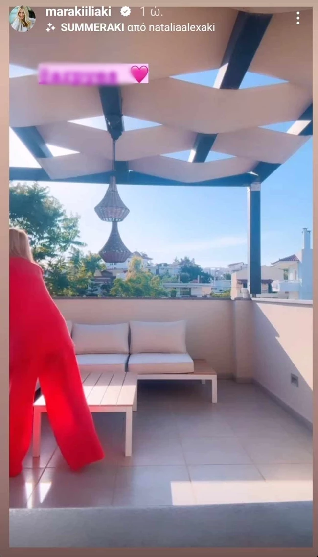 Έτσι, πρόσφατα, η γνωστή παρουσιάστρια μοιράστηκε ένα βίντεο, το οποίο και την έδειχνε στη βεράντα του σπιτιού της. Στα στιγμιότυπα που δημοσίευσε η ίδια θέλησε να δείξει το outfit της, αλλά εμείς παρατηρήσαμε τον προσωπικό της χώρο.