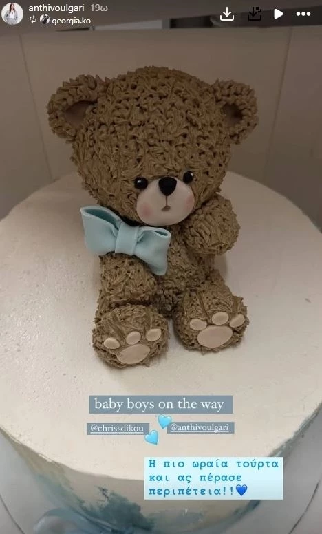 Τέλος καλό όλα καλά για την Ανθή η οποία σε λίγες μέρες θα κρατάει στα χέρια της το μωράκι της. Μάλιστα πριν λίγο μέσα από insta story αποκάλυψε και το φύλο του παιδιού της. Συγκεκριμένα, έκανε repost μία παιδική τούρτα με τη λεζάντα "Τα αγόρια έρχονται", μιας και εκτός από την Ανθή περιμένει τον γιο της και η κολλητή της φίλη!