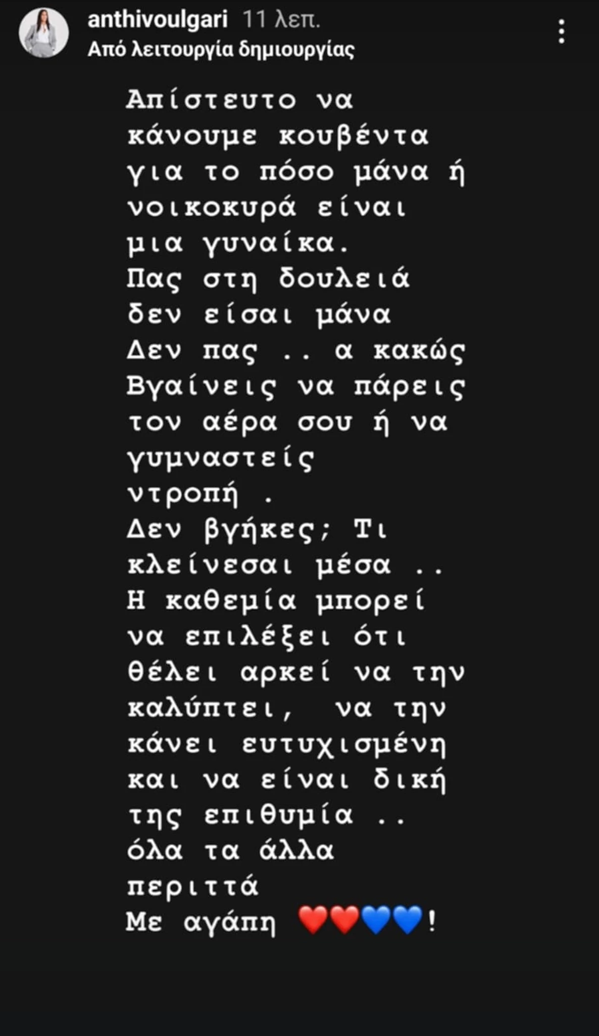 Βλέποντας όλη αυτή την έκταση που έχει πάρει το θέμα η Ανθή Βούλγαρη έκανε τη δική της τοποθέτηση μέσα από τα social media και μάς είπε κάπως το αυτονόητο.