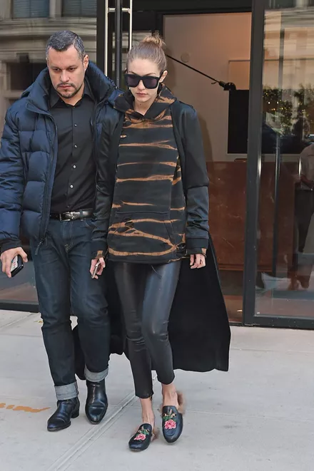 Miss Bloom's Tip: Το look της Gigi είναι σίγουρα ένας κομψός και ταυτόχρονα casual τρόπος, ώστε να ενσωματώσεις το δερμάτινο παντελόνι στα καθημερινά σου σύνολα.