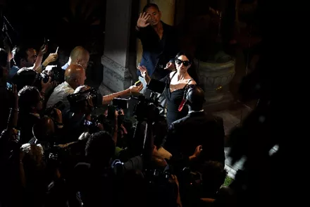 Με μαύρα ρούχα και μαύρα γυαλιά, η σταρ κατέφθασε στο ξενοδοχείο Excelsior, το απόγευμα της Πέμπτης, όπου την περίμενε πλήθος παπαράτσι για να την απαθανατίσει.