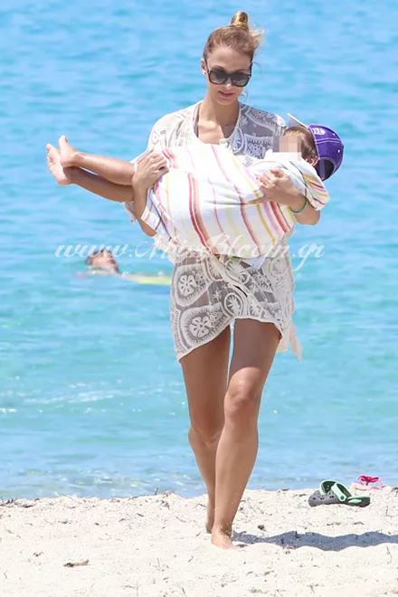 Η παρουσιάστρια και πρώην μοντέλο απόλαυσε τον ήλιο και τη θάλασσα έχοντας στο πλευρό της τα δύο από τα τρία παιδιά της, Αντρέι και Μίλα. Η ίδια επέλεξε να φορέσει ένα χακί μπικίνι, το οποίο αποκάλυπτε το γυμνασμένο κορμί της που συγκέντρωσε όλα τα βλέμματα.