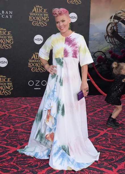 Η Pink εμφανίστηκε με το χαρακτηριστικό της ροζ μαλλί και ένα φόρεμα που μάλλον...έραψε και έβαψε μόνη της.