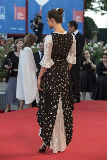 Η Alicia Vikander επέλεξε ένα φόρεμα Louis Vuitton με περίτεχνη πλάτη και αβυσαλλέο ντεκολτέ