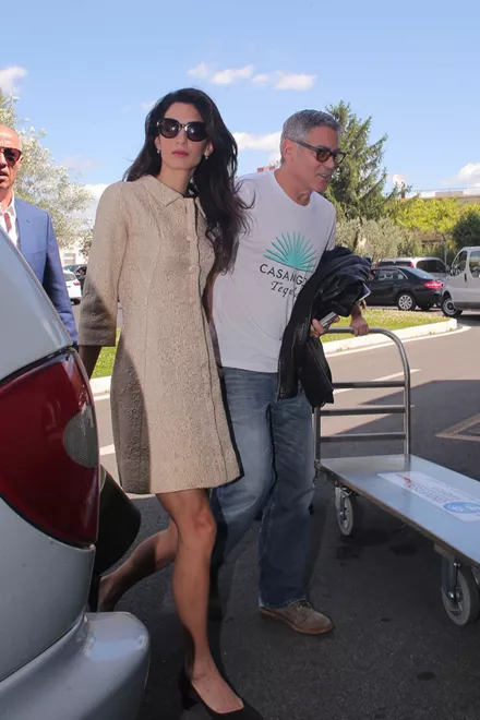 George and Amal Clooney leaving their hotel in Rome and arriving at the airport of Ciampino