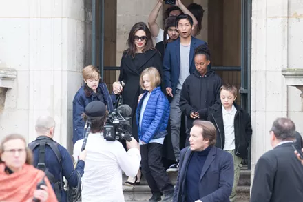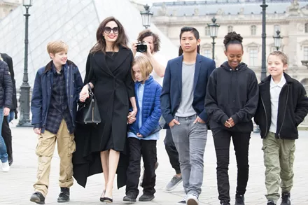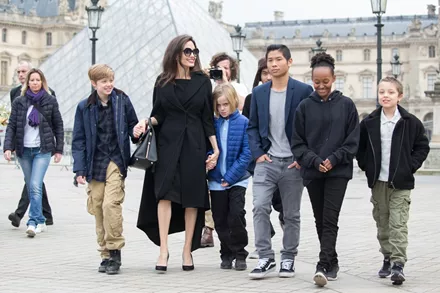 Η ηθοποιός μαζί με τον 16χρονο Max, τον 14χρονο Pax, την 13χρονη Zahara, την 11χρονη Shiloh και τα 9 ετών δίδυμα Vivienne και Knox βρέθηκαν στο μουσείο του Λούβρου, προκειμένου να απολαύσουν κάποιες οικογενειακές στιγμές μαζί.