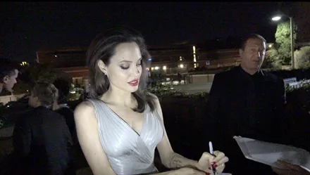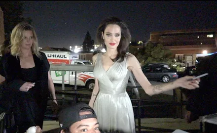 Φορώντας μία ασημένια δημιουργία, έχοντας χαλαρά τα μαλλιά της και ολοκληρώνοντας με κόκκινο κραγιόν, διέσχισε το κόκκινο χαλί του Royce Hall του Los Angeles όμως όχι μόνη της, αλλά έχοντας στο πλευρό της την 11χρονη Shiloh και την 13 ετών Zahara!