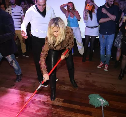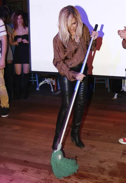 Η ονειροπόλα τραγουδίστρια έπιασε την σκούπα όπως και στο video clip.