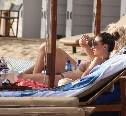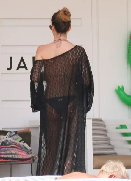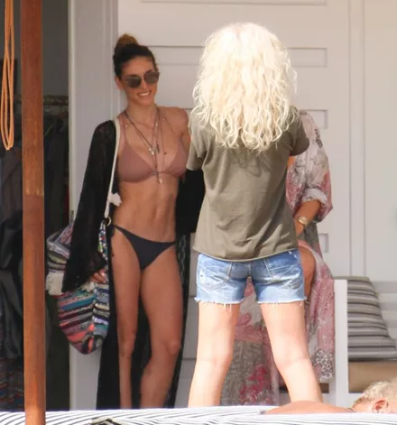 Ο φωτογραφικός φακός απαθανάτισε την ηθοποιό, η οποία φορούσε δίχρωμο μαγιό και διχτυωτό καφτάνι με τους άψογους κοιλιακούς της να κλέβουν τις εντυπώσεις.