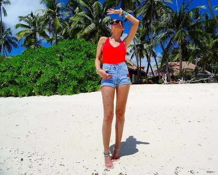 Η ηθοποιός ως γνωστόν είναι λάτρης του Instagram και δεν σταματά να μοιράζεται με τους διαδικτυακούς της φίλους στιγμιότυπα από το ταξίδι της και τις εξωτικές παραλίες στις οποίες απολαμβάνει την ηλιοθεραπεία και τις βουτιές της, αναστατώνοντας το Instagram με το καλογυμνασμένο της κορμί.