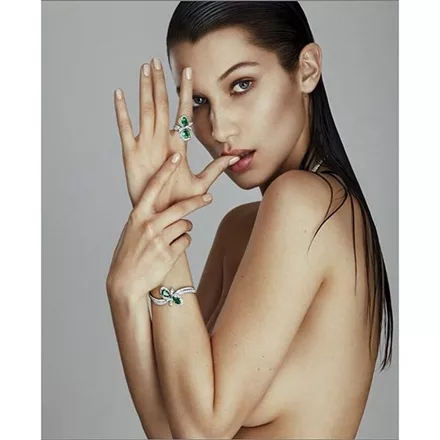 Αφού κατάφερε να εντυπωσιάσει με τις εμφανίσεις της κατά τη διάρκεια των fashion weeks, το 19χρονο μοντέλο πόζαρε για το φακό του ισπανικού Harper's Bazaar topless φορώντας λαμπερά κοσμήματα και μοιράστηκε τις φωτογραφίες στον προσωπικό της λογαριασμό στο Instagram.