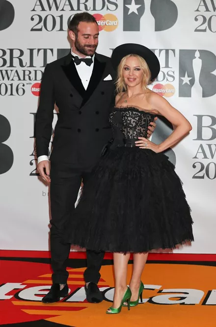 H Kylie Minogue έκανε μία ιδιόμορφη εμφάνιση στο κόκκινο χαλί, μαζί με τον αρραβωνιαστικό της Joshua Sasse επιδεικνύοντας και το μονόπετρο που της χάρισε.