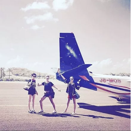 Η St. Vincent, η Cara και η Suki στο αεροδρόμιο των Barbados