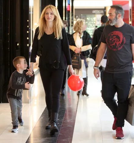 Ναταλί Κακαβά, Γρηγόρης Γκουντάρας με τον γιό τους, στο Golden Hall