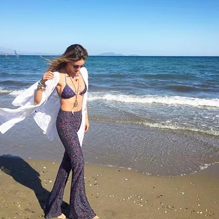 Η όμορφη ηθοποιός πόζαρε στην κάμερα φορώντας το πάνω μέρος του μπικίνι της και ένα εντυπωσιακό παντελόνι καμπάνα και λευκή πουκαμίσα, με τους κοιλιακούς της να κλέβουν τις εντυπώσεις.