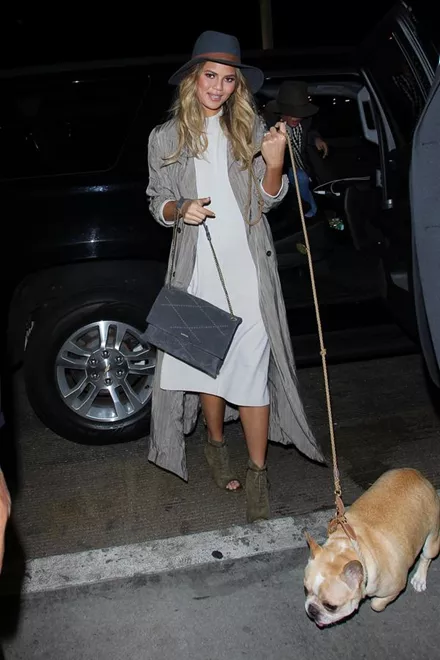Η Chrissy Teigen αν και εγκυμονούσα φόρεσε τα ψηλά της τακούνια και έβγαλε βόλτα το αγαπημένο της σκυλάκι
