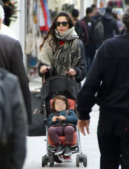 Η Κατερίνα Παπουτσάκη με τον γιο της, Μάξιμο, στην Πλάκα
