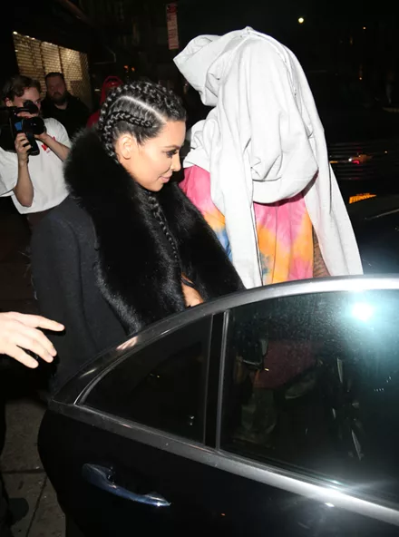 Καθόλου όρεξη για φωτογραφίες δεν είχε ο Kanye και εμφανίστηκε με το φούτερ στο κεφάλι.