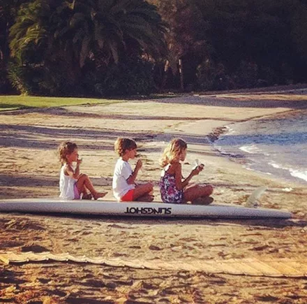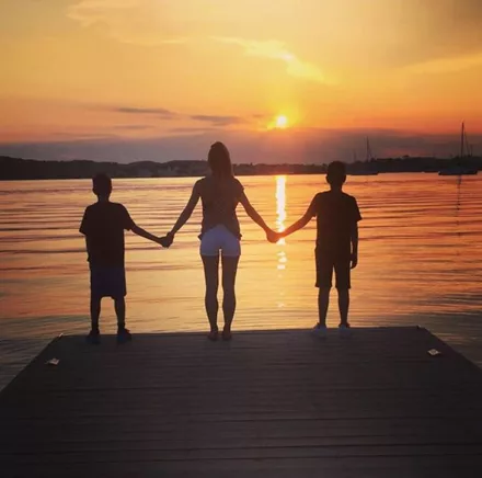 Η Ντορέττα Παπαδημητρίου φωτογραφίζεται στο ηλιοβασίλεμα χεράκι με τους δυο της γιούς