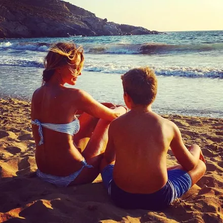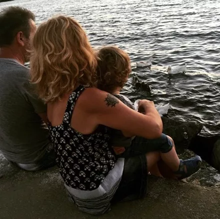 Η Σύλβια Δεληκούρα αγκαλιά με το αγοράκι και τον σύντροφό της δίπλα στα κύματα
