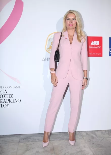 Στη φωταγώγηση του Δημοτικού Θεάτρου Πειραιά με ένα ροζ κοστούμι του σχεδιαστή Dimitris Petrou, και ροζ γόβες Dukas.