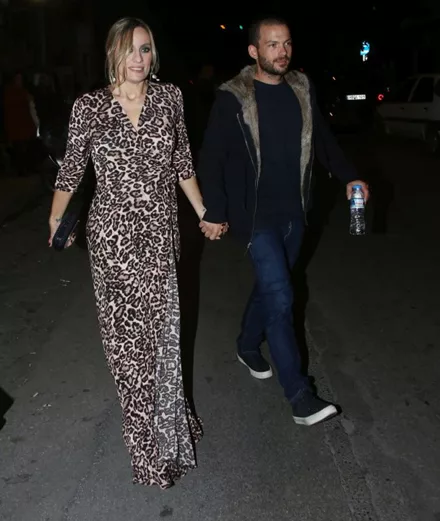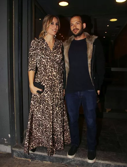 Η εγκυμονούσα παρουσιάστρια παρακολούθησε την παράσταση "Πολυτεχνίτης και ερημοσπίτης" σε σκηνοθεσία του Βασίλη Θωμόπουλου κι έμεινε εντυπωσιασμένη από τις ερμηνείες του Σπύρου Σούλη, του Γιάννη Μποσταντζόγλου και του Θανάση Βισκαδουράκη.