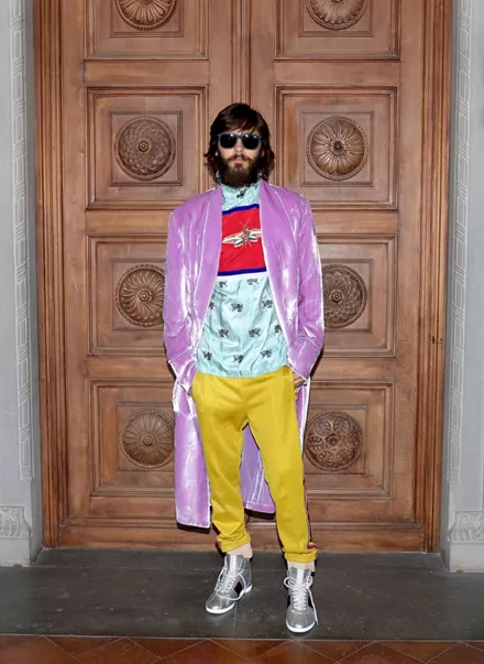 Όλοι οι παραπάνω δεν θα μπορούσαν, λοιπόν, να λείπουν από το -όπως πάντα εντυπωσιακότατο- fashion show της Gucci Resort 2018 συλλογής του. Πιο εντυπωσιακός απ'όλους, ωστόσο, ήταν ο Jared Leto που εμφανίστηκε φορώντας ένα εντυπωσιακό μάξι παλτό από ροζ βελούδο, κίτρινο παντελόνι και μια μπλούζα με μοτίβο από μέλισσες.