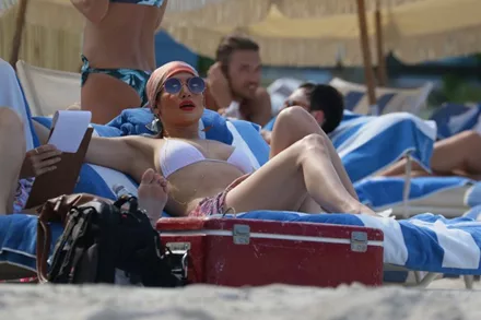 Ο φωτογραφικός φακός εντόπισε την Λατίνα τραγουδίστρια να χαλαρώνει κάτω από τον ήλιο καθισμένη στην ξαπλώστρα της και φορώντας ένα λευκό μαγιό.
