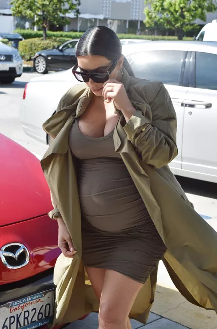 Kim Kardashian Flashes Bare Baby Bump While Leaving Baby Shower in Beverly Hills