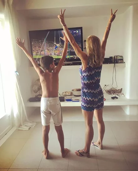 Παρακολουθώντας τους Ολυμπιακούς αγώνες παρέα με τον ένα γιο της