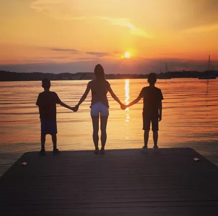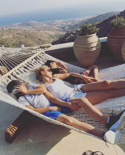 Στο Πόρτο Χέλι με τα παιδιά της, με τα οποία φωτογραφίζεται στο ηλιοβασίλεμα