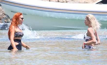 Στη Μύκονο απαθανάτισε ο φωτογραφικός φακός την Σίσσυ Χρηστίδου και την Χριστίνα Κοντοβά, να απολαμβάνουν το μπάνιο τους σε παραλία του νησιού.
