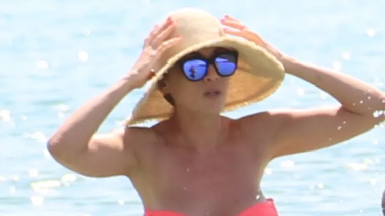 Η τραγουδίστρια επέλεξε ένα εντυπωσιακό μαγιό σε πορτοκαλί χρώμα, ενώ δεν αποχωρίστηκε ούτε στιγμή το ψάθινο καπέλο της.