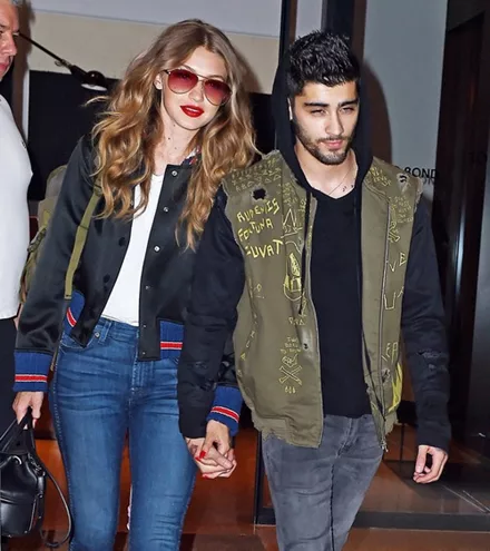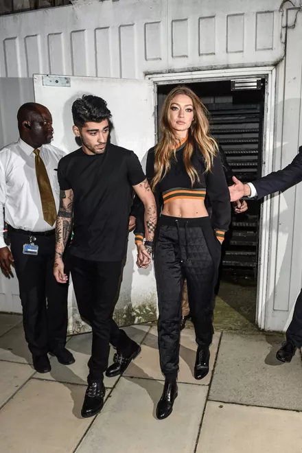 Gigi Hadid and Zayn Malik leave Versace Fashion Show in London.