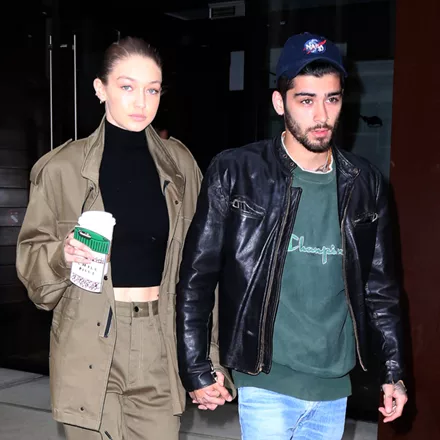 Matching Gigi Hadid and Zayn Malik hold hands as they head to the airport, NYC