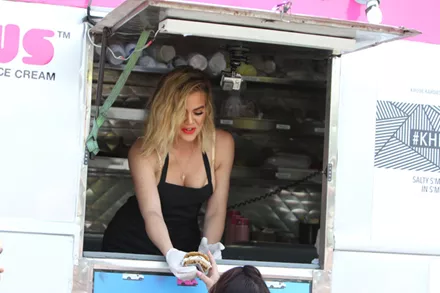 H Khloe Kardashian με κατακόκκινο κραγιόν και ντεκολτέ. Σχεδόν όπως δεν την έχεις ξαναδεί, αφού μοίραζε παγωτά σε ένα βανάκι...